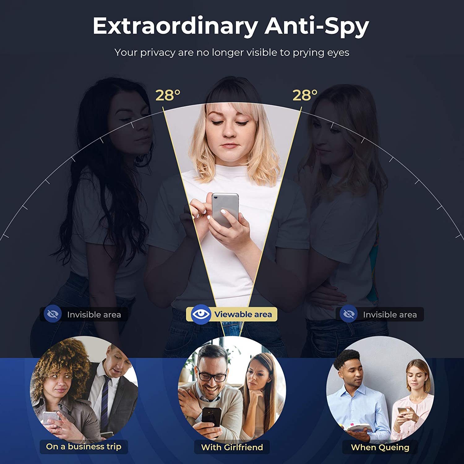 Privacy:TECHO Privacy Screen Protector keeps your personal, private, and sensitive information hidden from strangers. Block views from the left and right side within 45 degrees. The screen is only visible to persons directly in front of the screen.