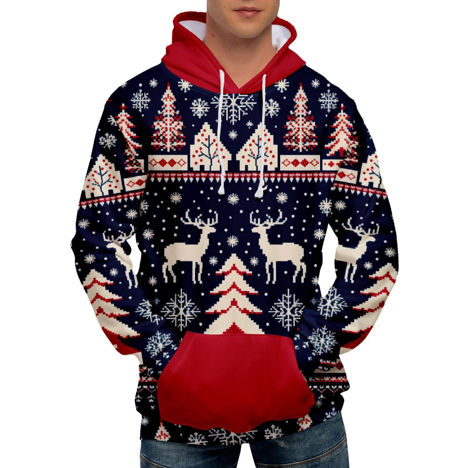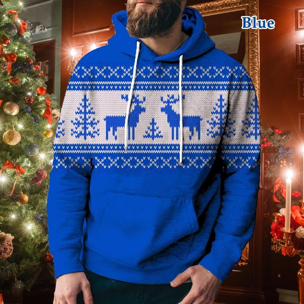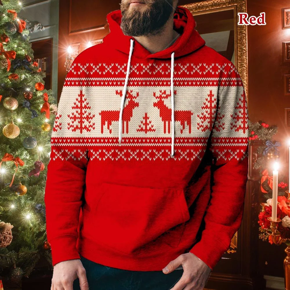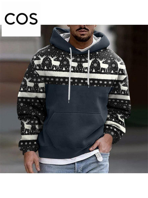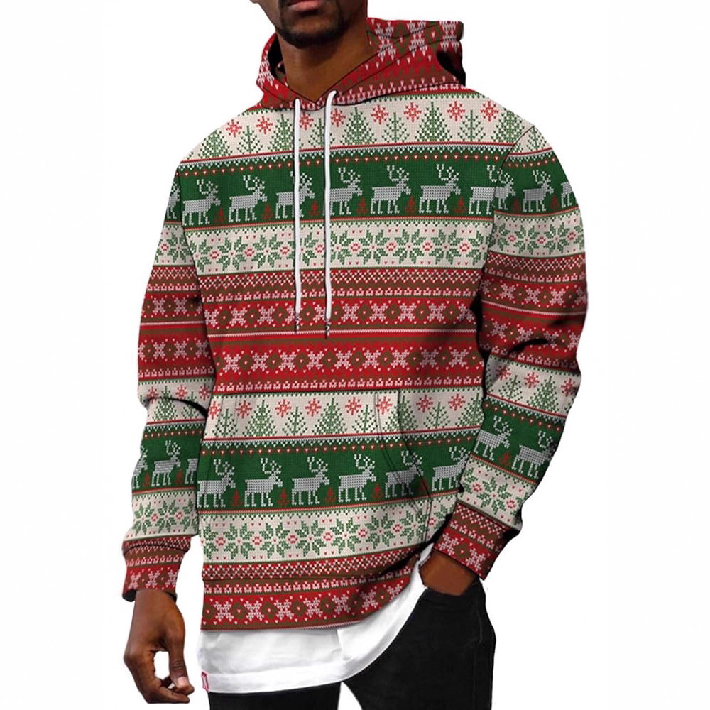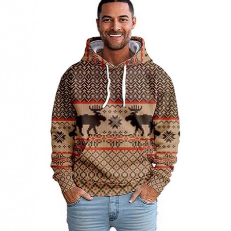 Men's Casual Sports Christmas Reindeer Series 3D Digital Printed Hooded Pullover