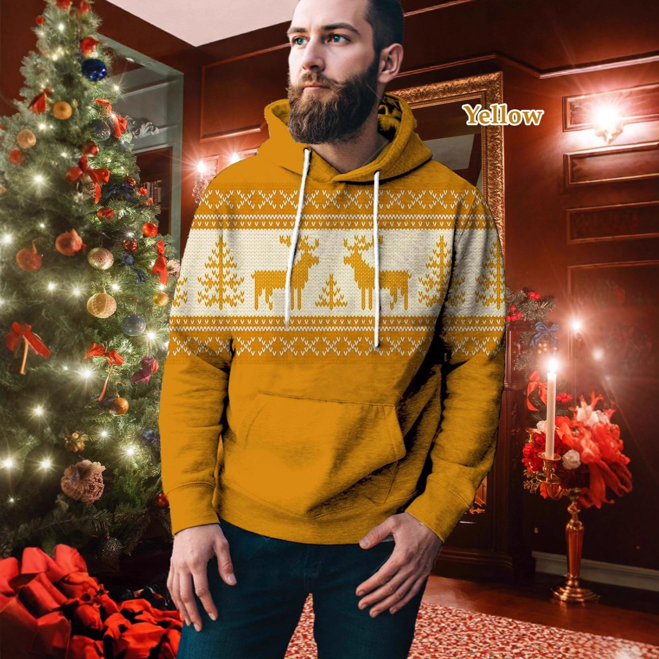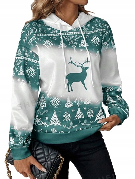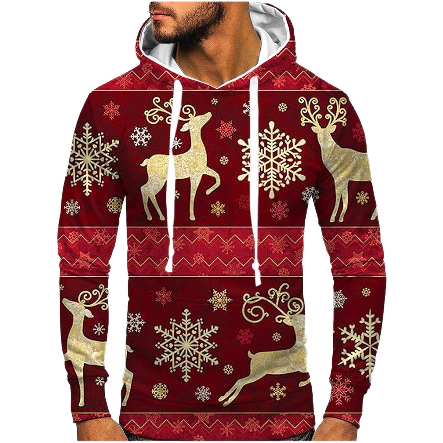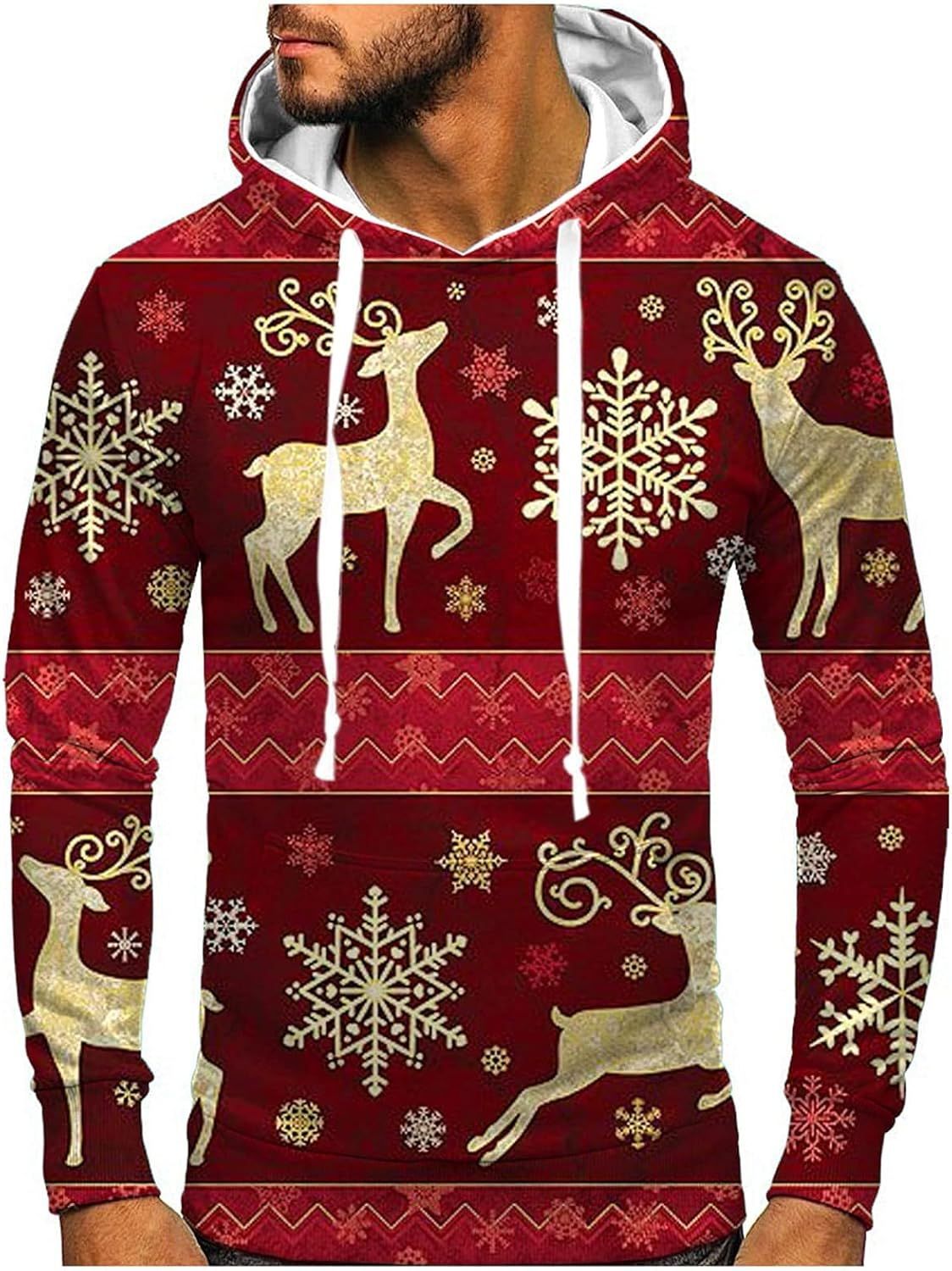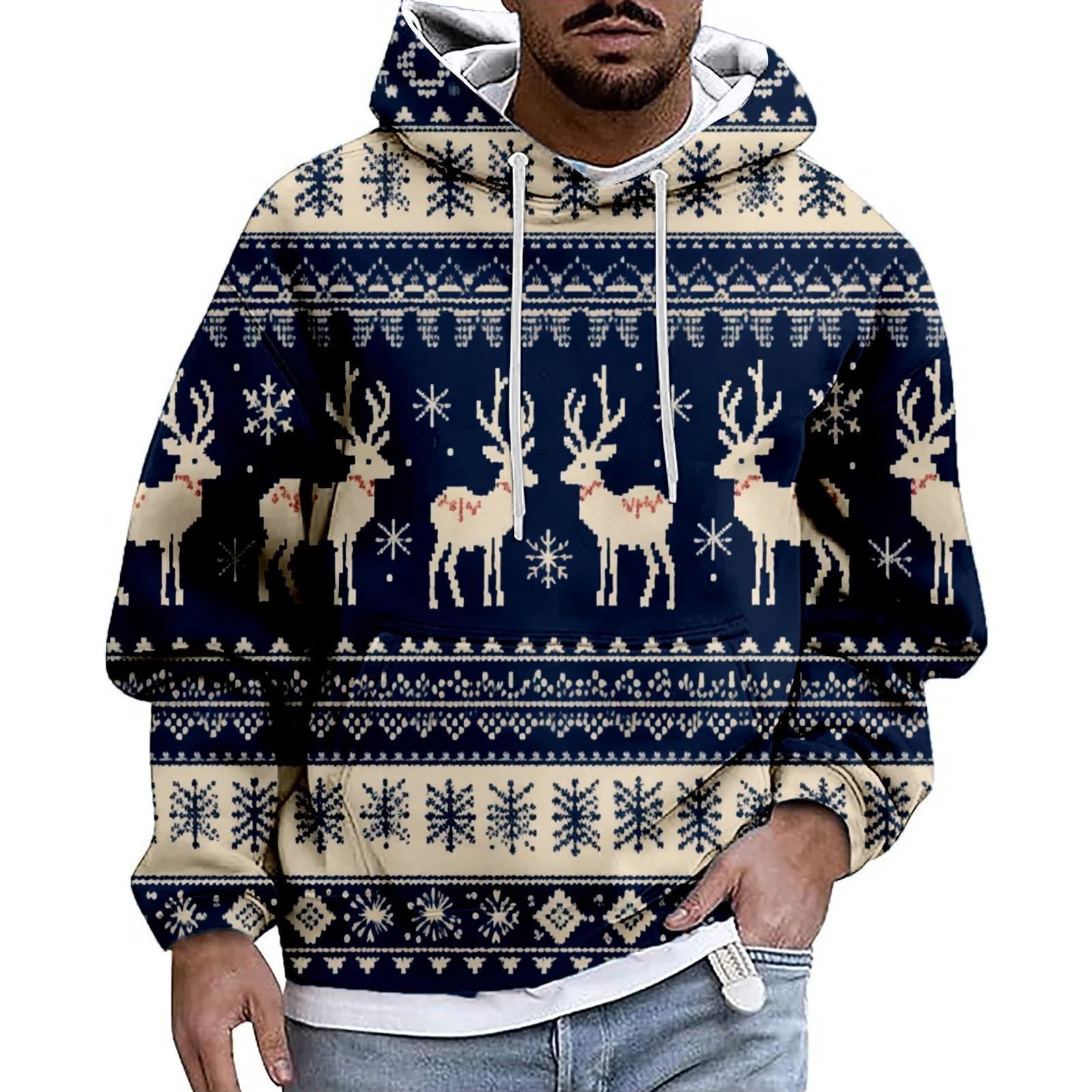 Men's Casual Sports Christmas Reindeer Series 3D Digital Printed Hooded Pullover