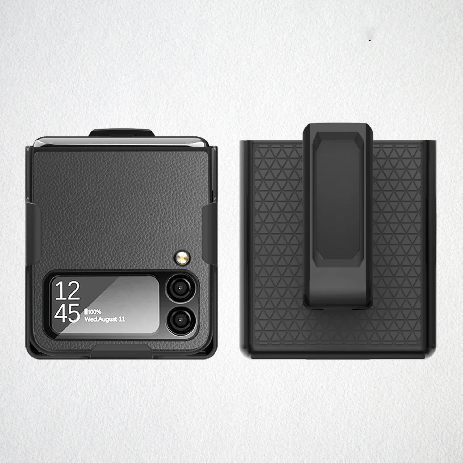 Securely slide in/slide out your Z Flip for convenient daily use, and durable rotating clip adjusts 180° for either right and/or left handed use. Soft microfiber felt lining.