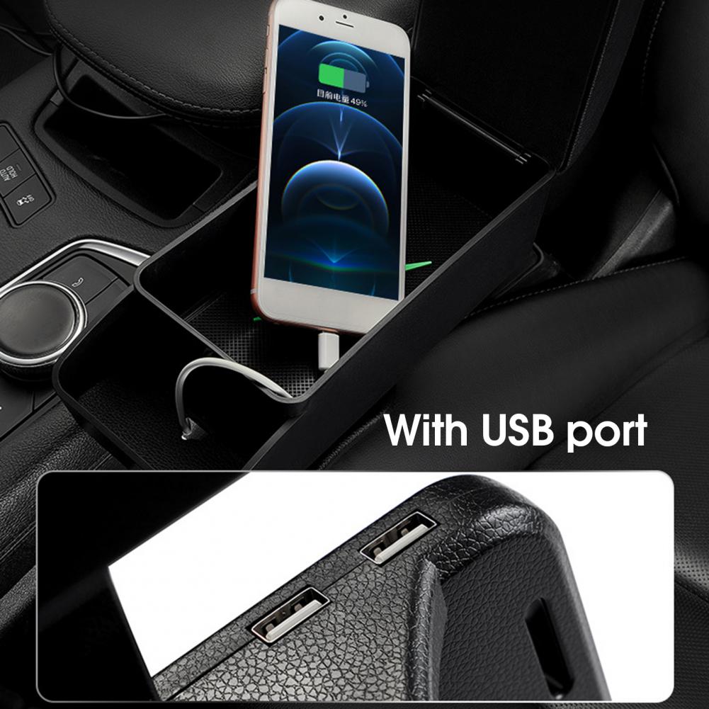 ✔✔ Multifunctional storage: intelligent space, so that your center console is not messy, so that items are in order, creating an independent storage space for you. This car armrest storage box can hold glasses box, mobile phone, paper towel, car key, charger or other items. It is equipped with a USB interface, so you can easily charge your phone. Give you different visual effects.