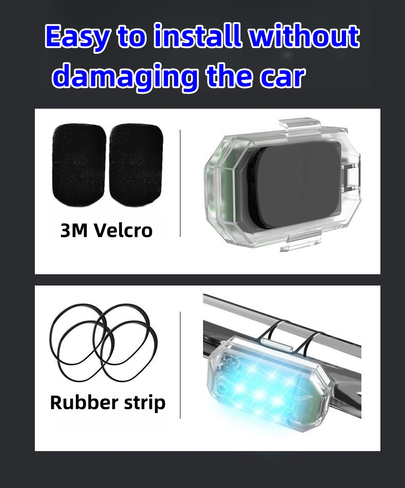 This flashing light has high brightness and can be adjusted in various colors to make your car unique. At the same time, when you drive at night, it can warn the front and rear vehicles to ensure a safe distance.