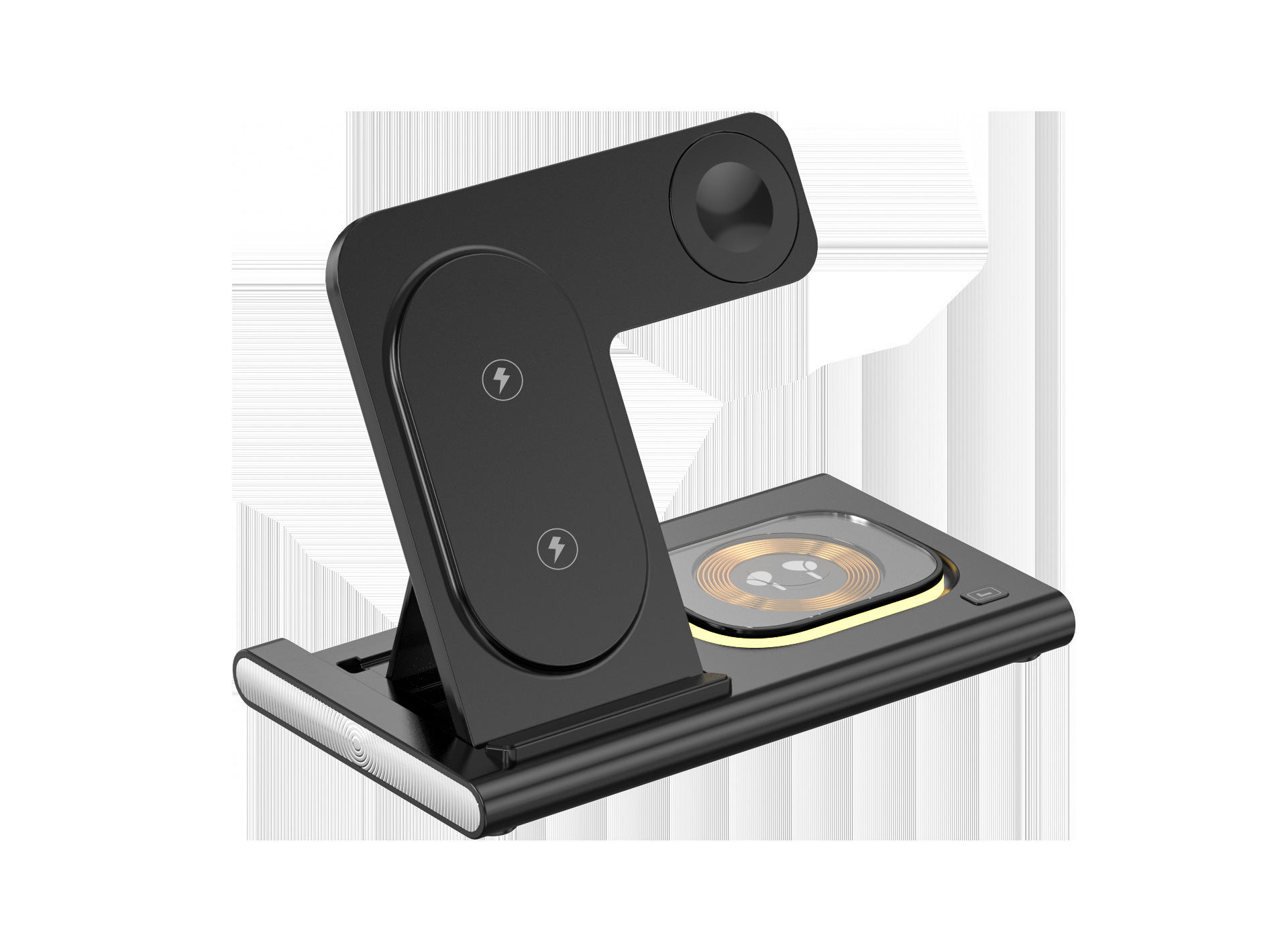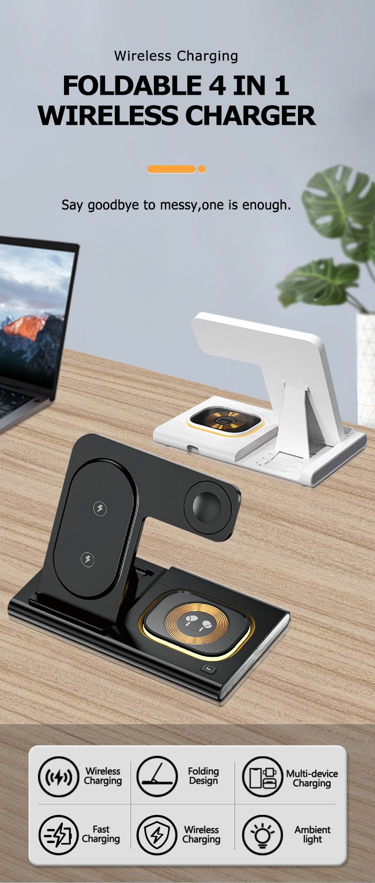 4-in-1 3-Chip 15W Wireless Charging Station: Stylish and compact wireless charger stand offers three charging points to charge three devices simultaneously and features a fast charging output port. Say goodbye to a cluttered desktop or nightstand and easily charge your iPhone, Apple Watch and AirPods. Works with MagSafe and Qi wireless charging.