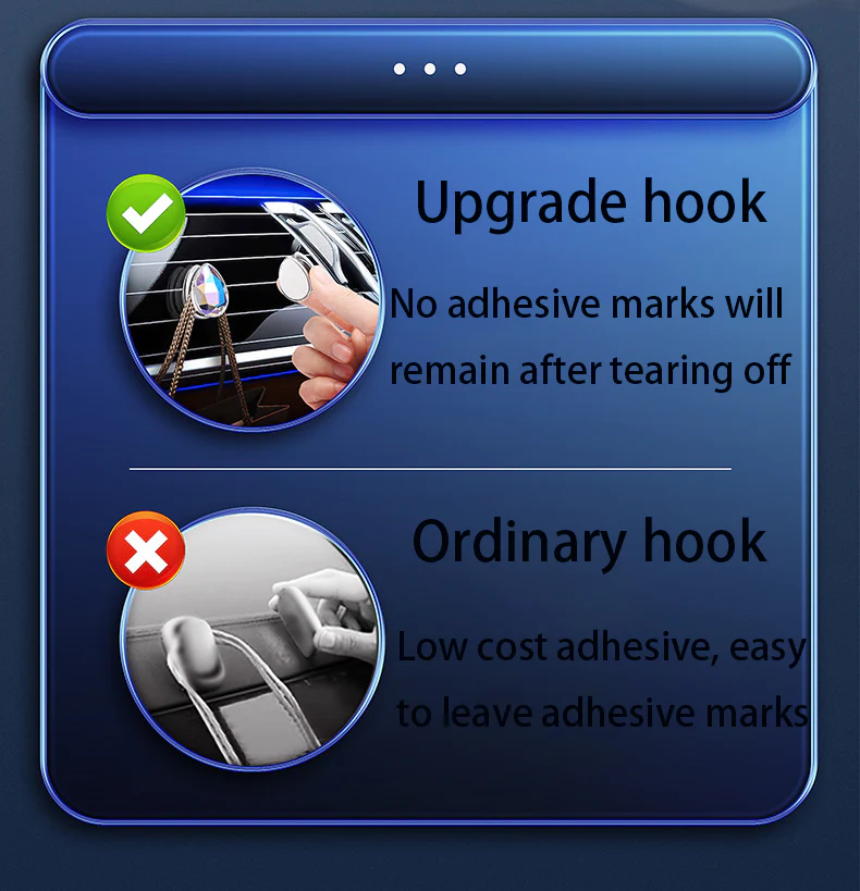 Widely used -Our crystal mini hook can be used in multiple scenarios, and can be pasted in kitchen, bedroom, living room, refrigerator, and other places at home. Not only in the car, but also in the home, it is a brand new look. It is suitable for glass, metal, leather, plastic, wooden tiles, and other materials, and can be pasted in any position.