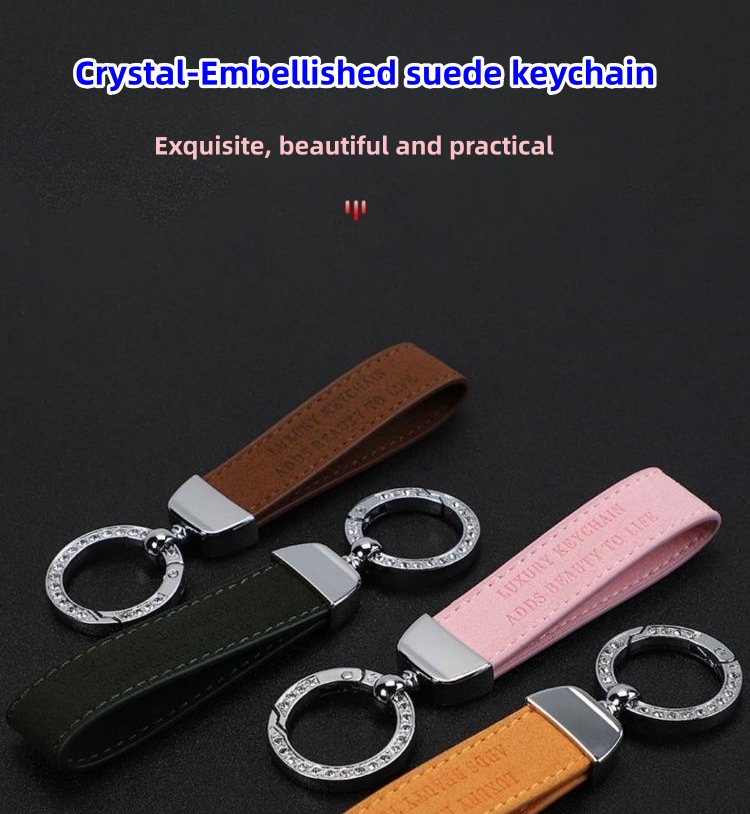 Specification Material: suede + metal + rhinestone Weight: 120g Installation location: car key chain