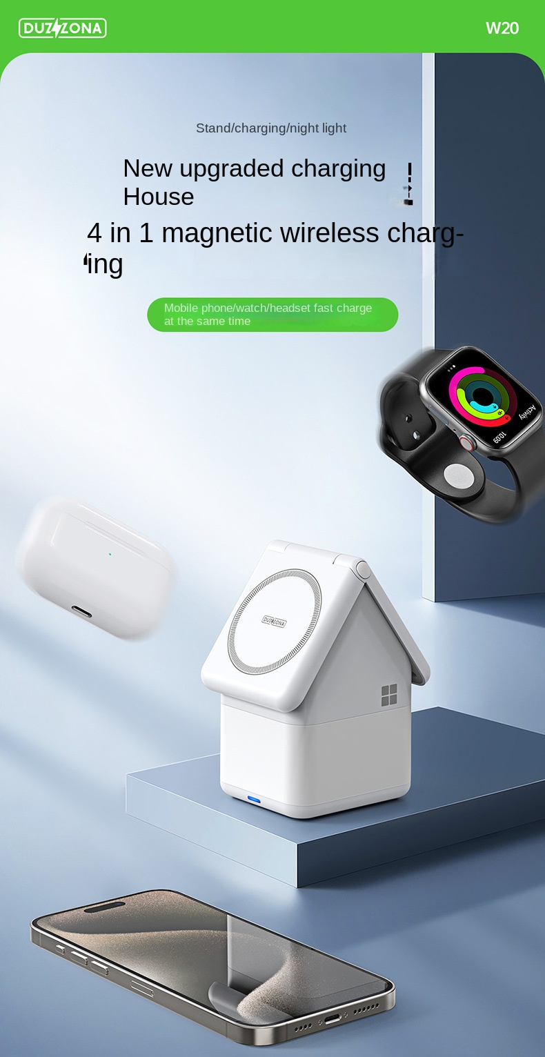 4 in 1 Magnetic Radio House Creative Gift Apple Watch Earphones Wireless Charger