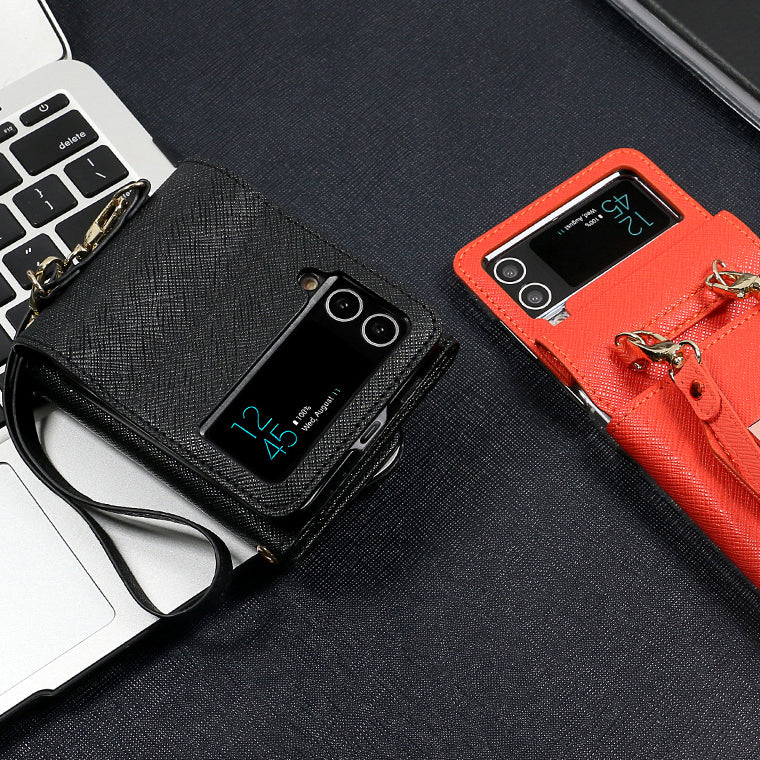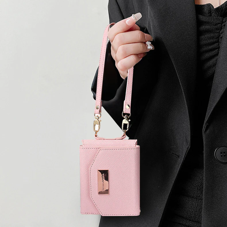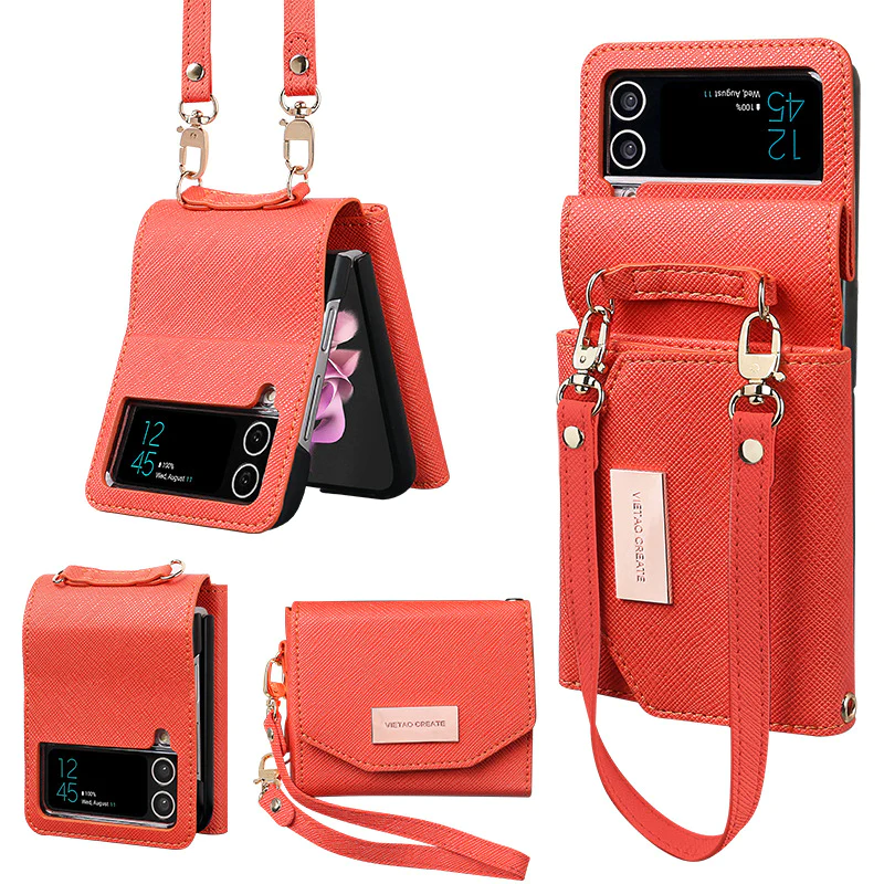 【Multi function wallet box】 Foldable wallet style wallet box with removable card holder (4 card storage spaces) With removable and adjustable strap, it is the perfect accessory for picnic or travel. Snap strap can be used for ear plug cable clip. Carry and wear the Galaxy Z Flip 3/4 and wallet with you, just like a cross bag, convenient for both hands.