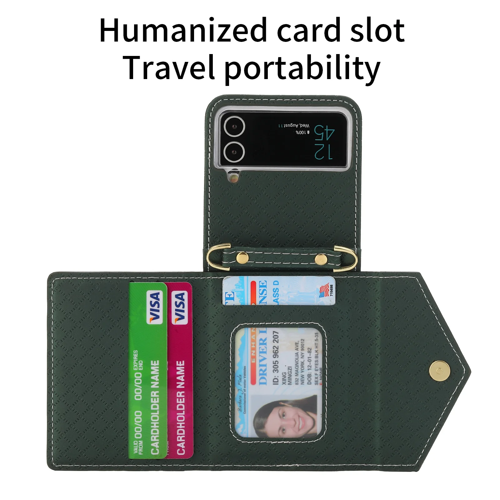 adjustable strap making it the perfect accessory to your picnics or traveling. Snap closure strap can be used for the earbud cord holder. Carry and wear your Galaxy Z Flip 3/Z Flip 4 2022 with Goospery Wallet Case like a cross-body bag for hands free convenience.
