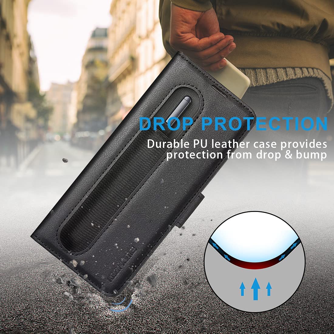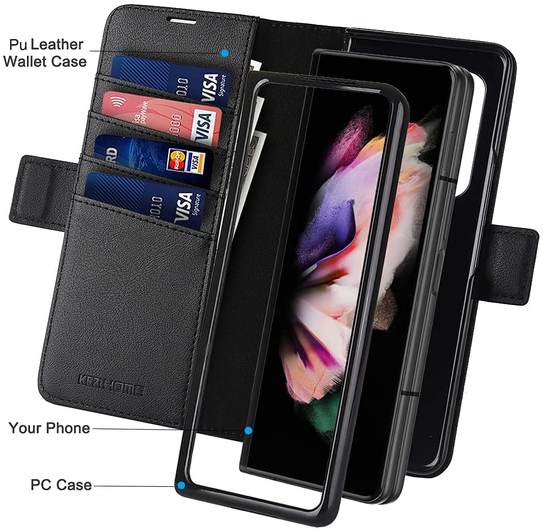 [Comprehensive protection] Galaxy Z Fold 3 5G wallet-style protective case is made of selected high-quality PU leather, providing you with a comfortable feel and super impression. The flexible and durable soft TPU inner shell provides excellent double-layer protection for your device to protect your phone.