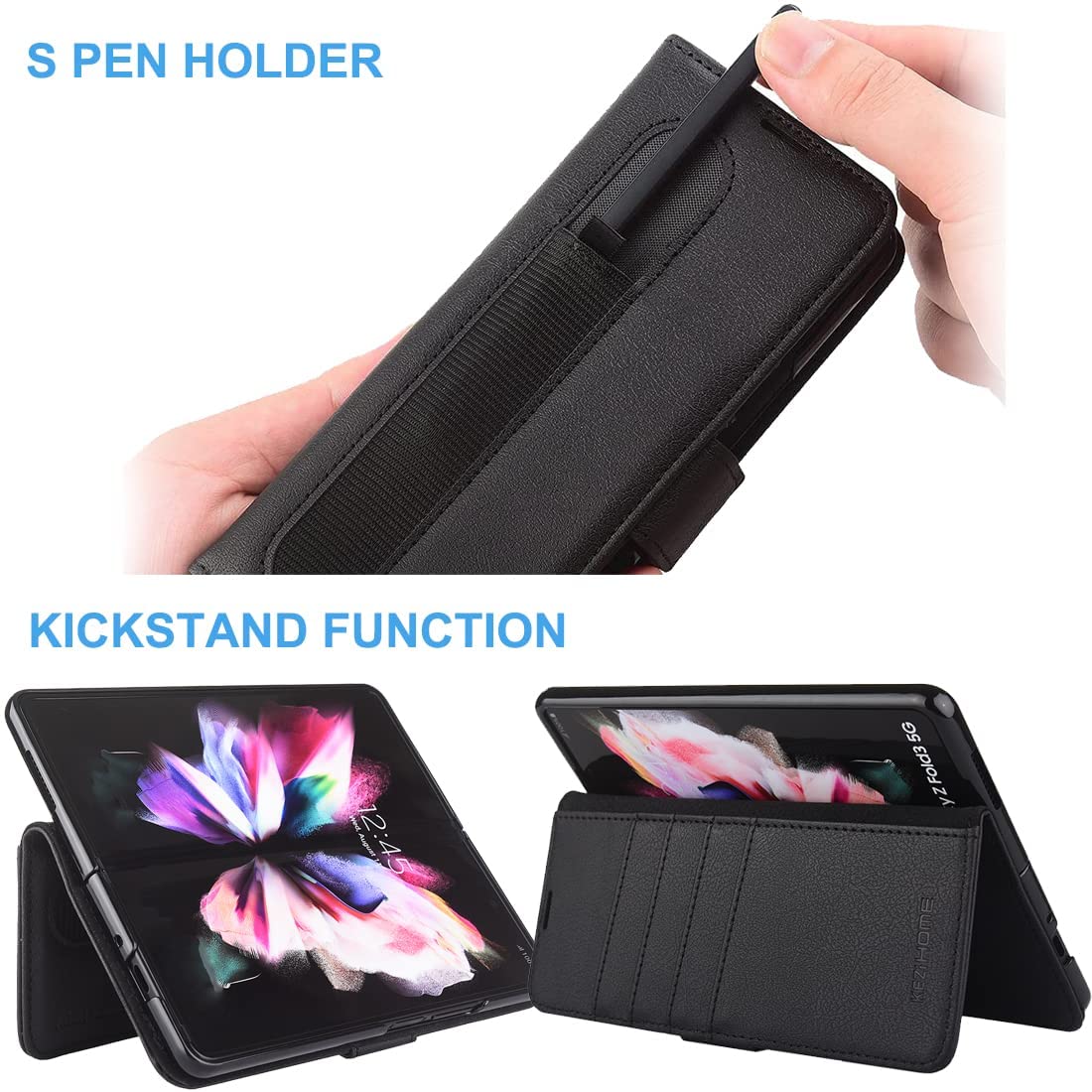 [Multifunctional] (1) This Samsung Galaxy Z Fold 3 5G mobile phone case is designed with RFID shielding technology, which can block RFID signals and protect personal information from unauthorized scanners. (2) Including 4 card slots and 1 wallet, you can carry your credit and debit cards and cash with you. (3) Built-in support function, hands-free watching movies, reading, video chat. (4) The magnetic buckle is kept closed and protected, and the magnetic buckle is safe.