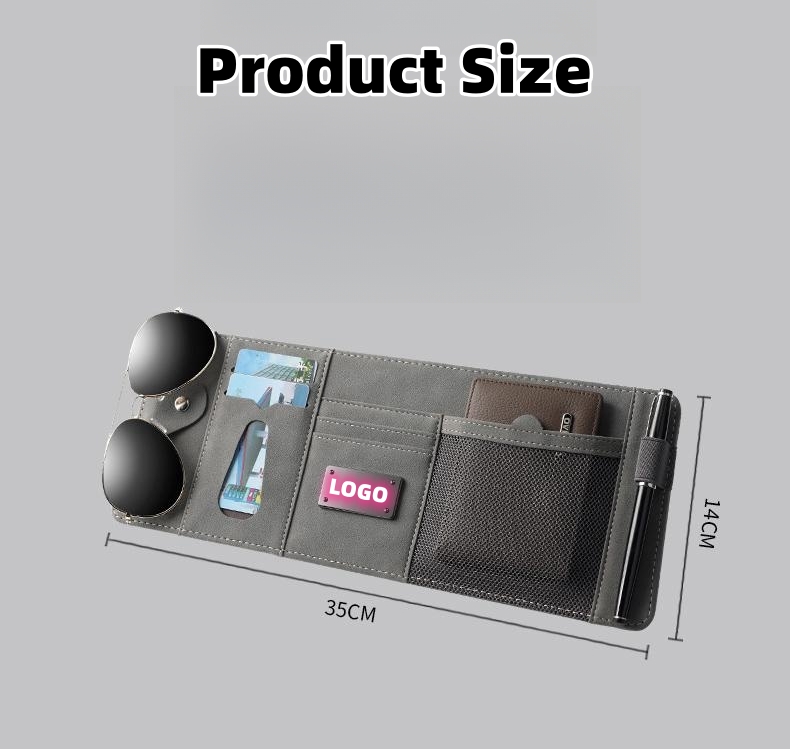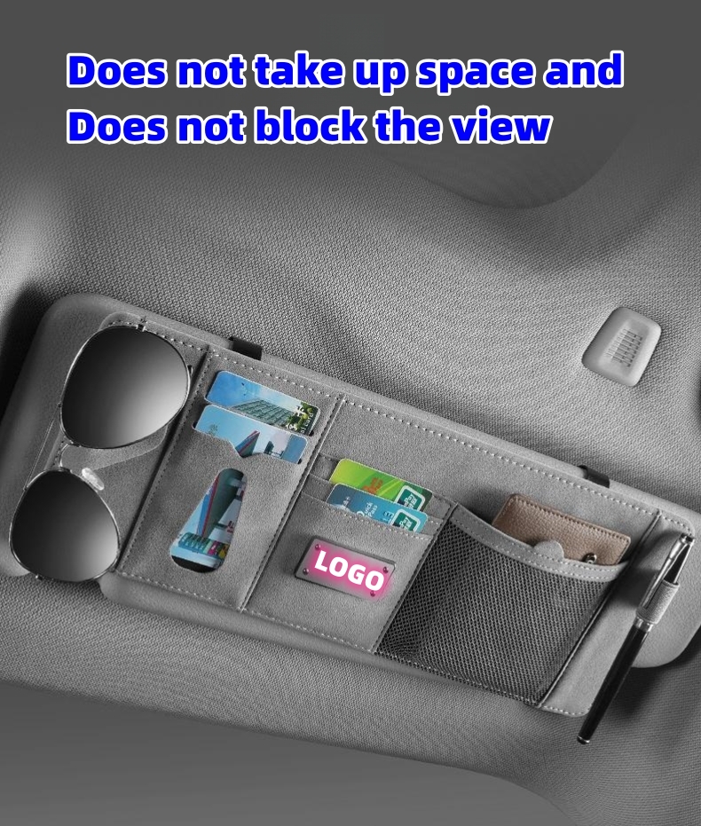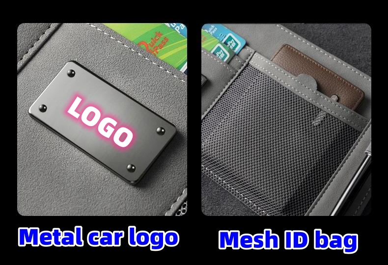 ćHigh Quality MaterialćThe sun visor storage rack is made of high quality suede leather, which is more textured, delicate, flexible and durable. It feels comfortable, does not fade or fall off, and has 5 card slots to effectively store credit cards and bank card items. The buttoned eye clip protects glasses and other items from damage. The ID mesh bag allows you to find it when you look up for your ID.