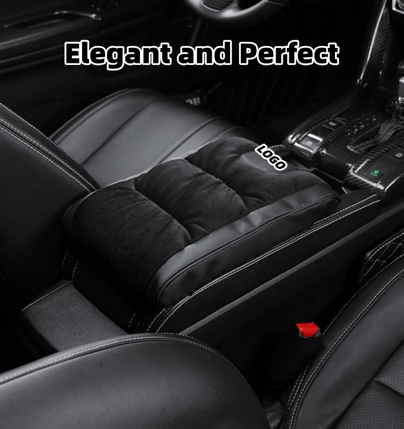 Car leather flannel raised armrest box mat (Special Car LOGO) (Widened Version)