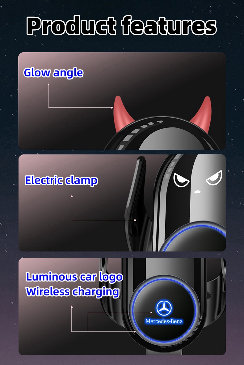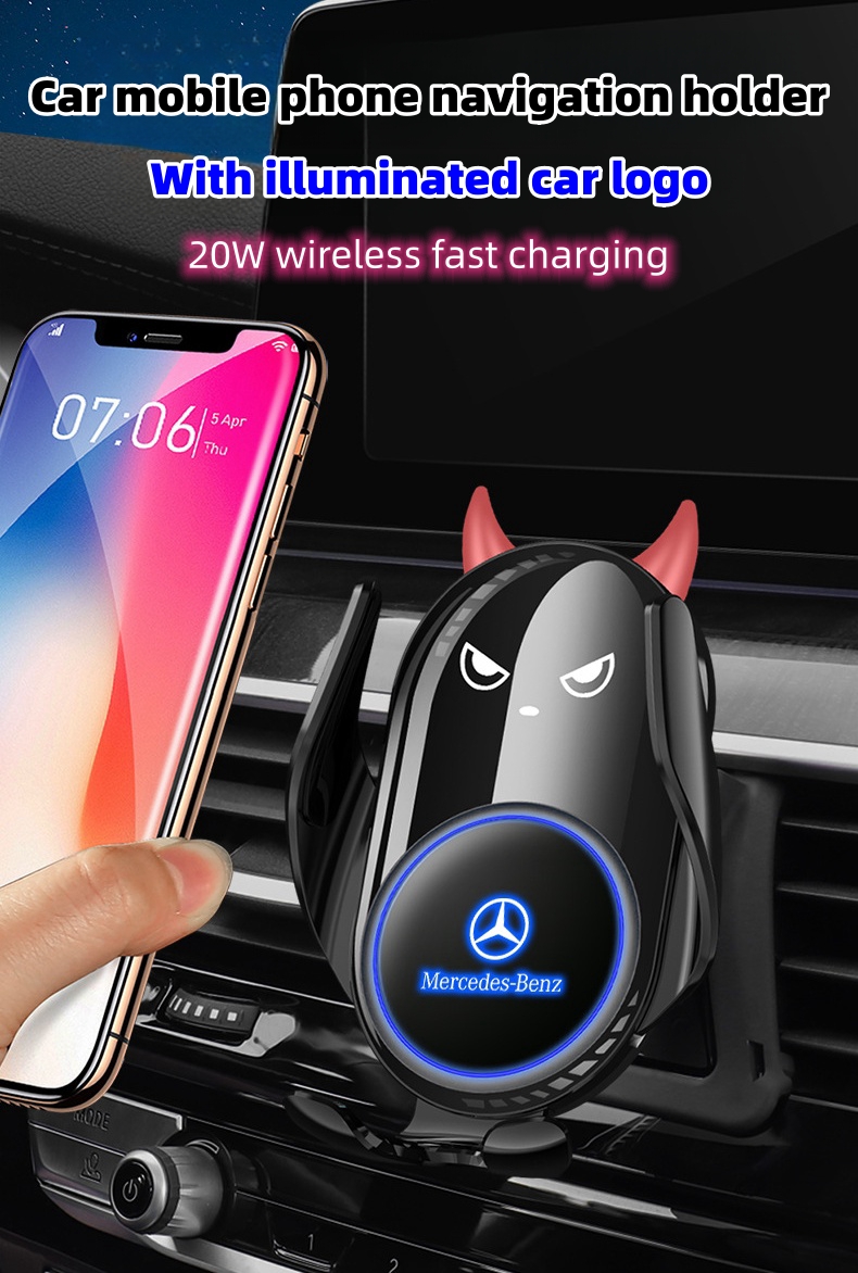 đThe latest "Devil's Horn" car mobile phone navigation car LOGO holder, electric opening and closing, wireless charging with illuminated car logo, allows you to travel coolly.