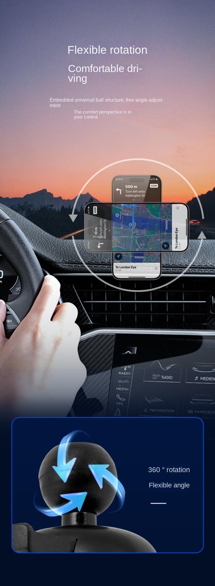 👍【Flexible Vision, Easy Operation】360° rotating ball joint, easily find the most suitable position and comfortable angle, without additional cumbersome operations, to ensure your safe driving.