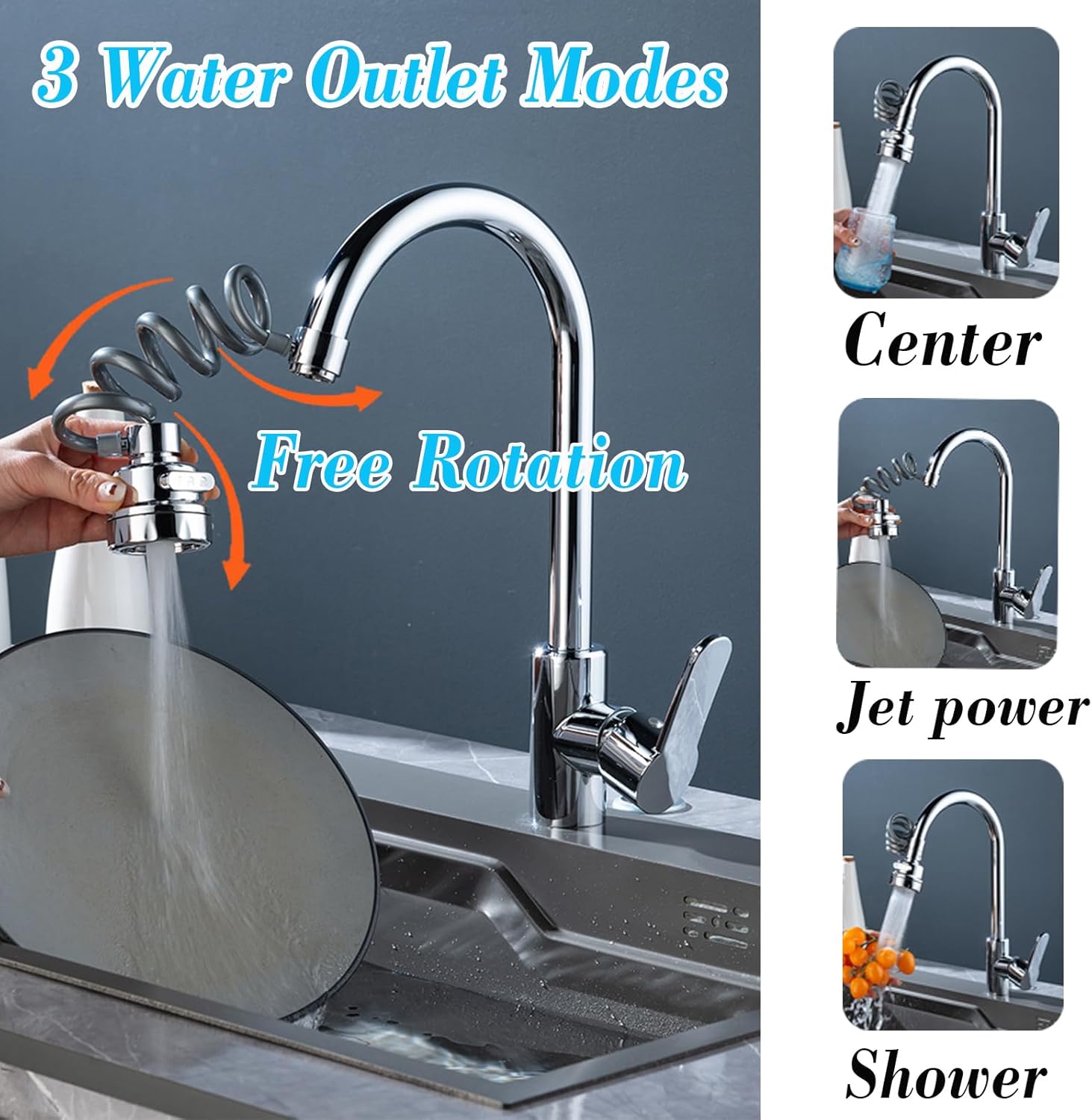 [Sink Faucet Sprayer Attachment]: Upgrade Faucet Shower Attachment extend faucet to anywhere by using spring hose. It is perfect for kitchen sink, bathroom pet shower, hair washing, baby shower. The 360° swiveling faucet aerator allows easy maneuverability at any angle, ensuring no spot is left uncleaned.