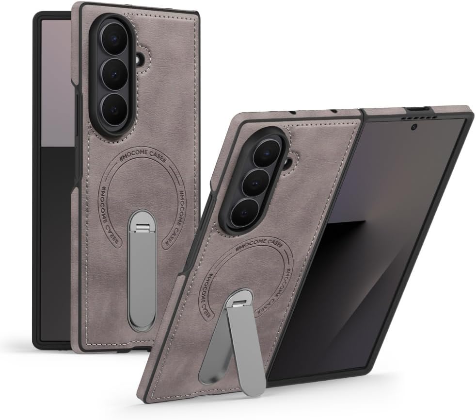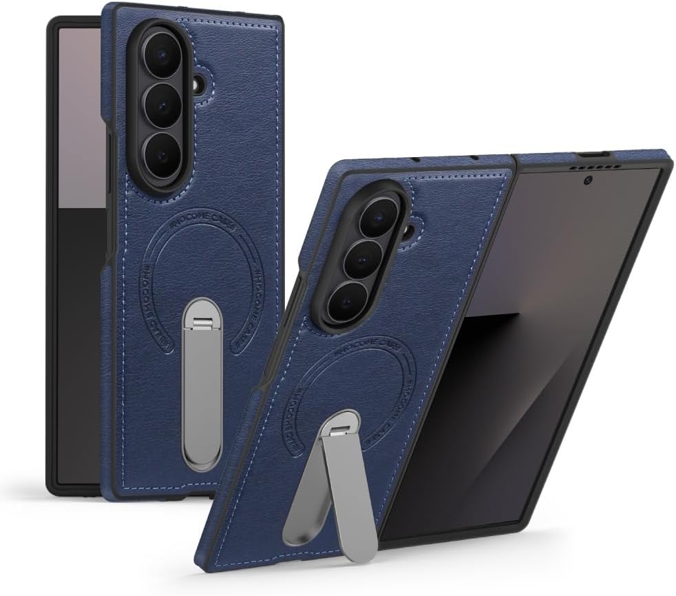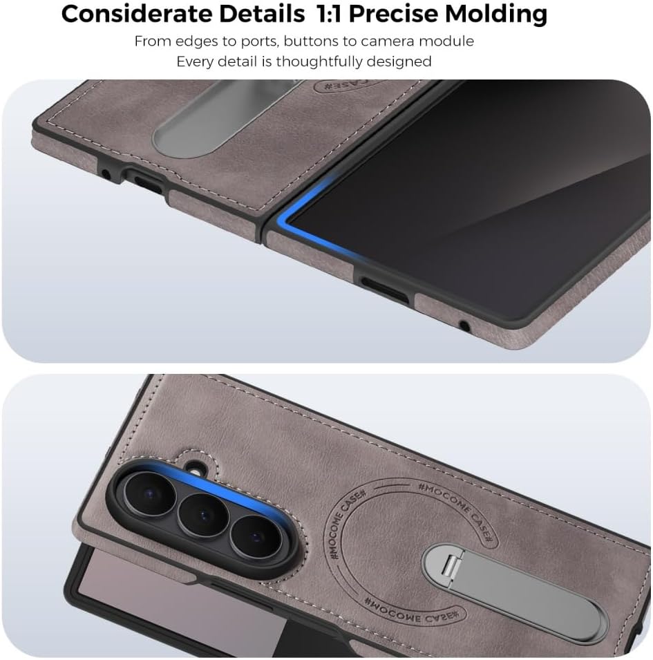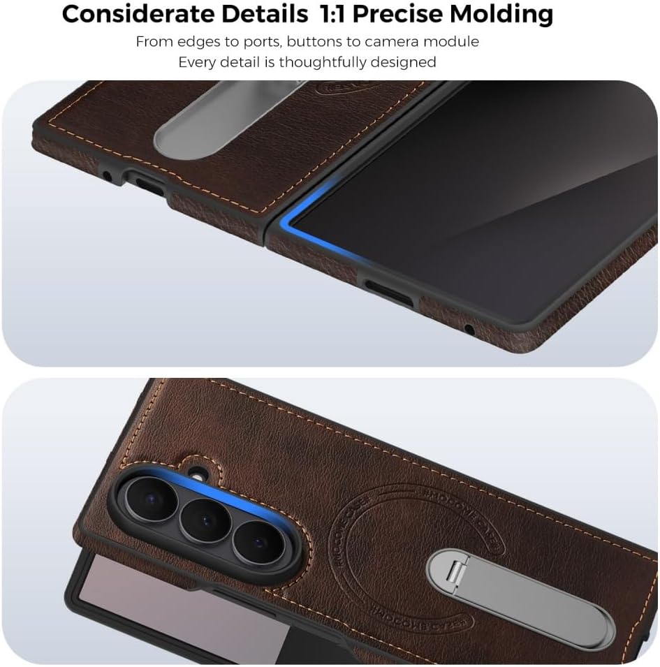 360 Rotae Kickstand Leather Case for Samsung Galaxy Z Fold 7 6 5 4 3 5G Magnetic Heavy Duty Cover, Military Shockproof Cases