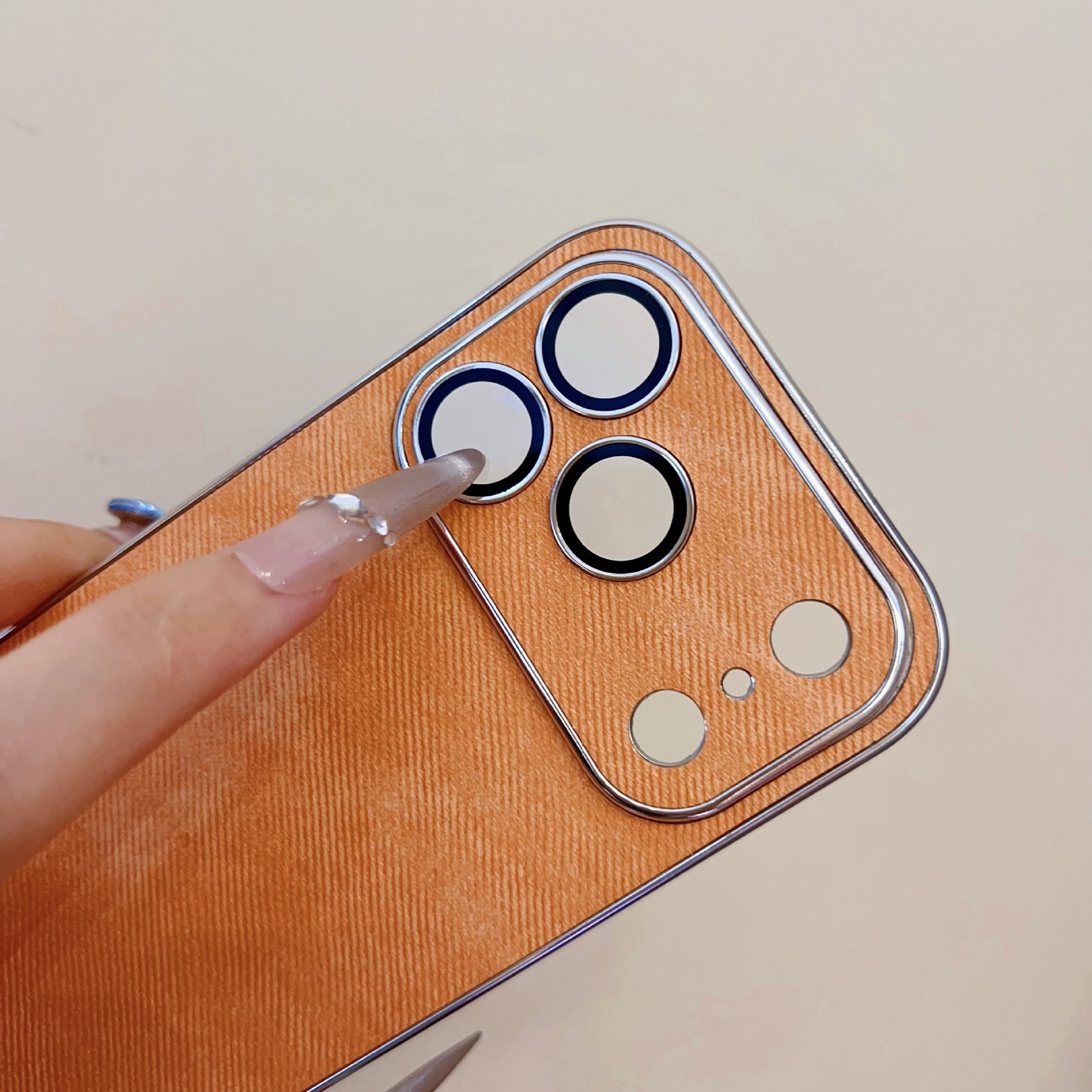 Orange electroplated edge cloth texture soft shell - comes with lens film