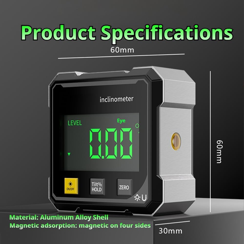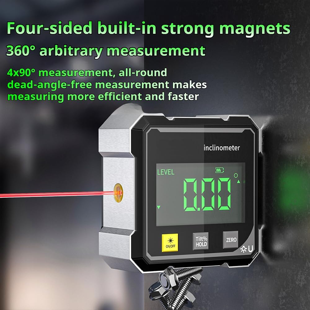 Why you choose the 4-Side Magnetic Digital Angle Gauge? ✨ High-precision 4×90°measurement for accurate angle readings. ✨ Bright LED display ensures visibility in all lighting conditions. ✨ Strong 4-side magnets for stable hands-free operation. ✨ USB rechargeable with auto shut-off for energy efficiency. ✨ Durable shockproof design with simple intuitive controls.