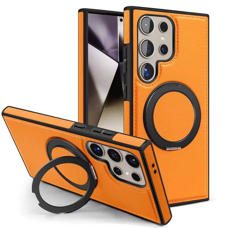 Suitable For Samsung S25Ultra Magnetic Rotating Stand Mobile Phone Case Galaxy S24Fe Leather Anti-Fall Protective Cover