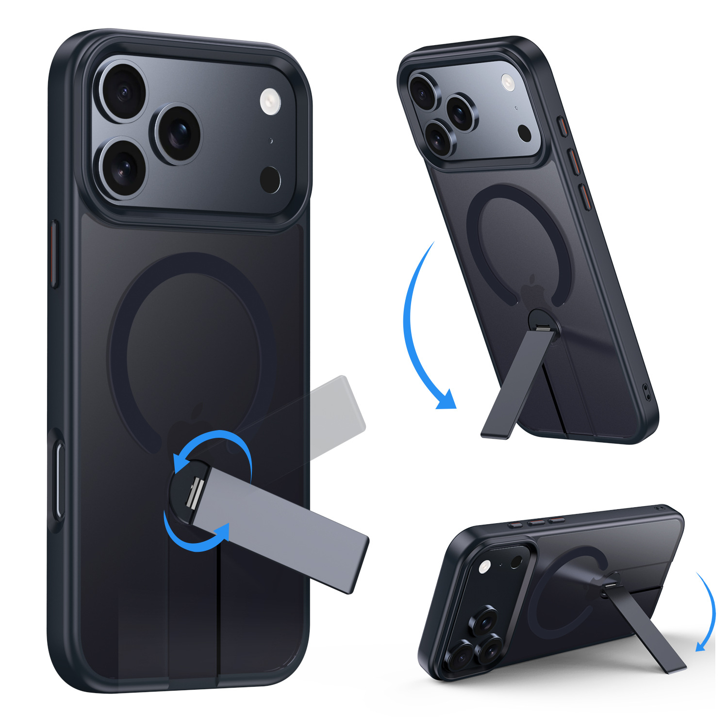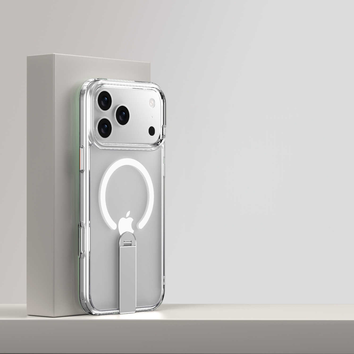 Suitable For Apple 17 Mobile Phone Case Straight Rotating Magnetic Stand Magsafe Transparent Iphone17Pro Mobile Phone Case