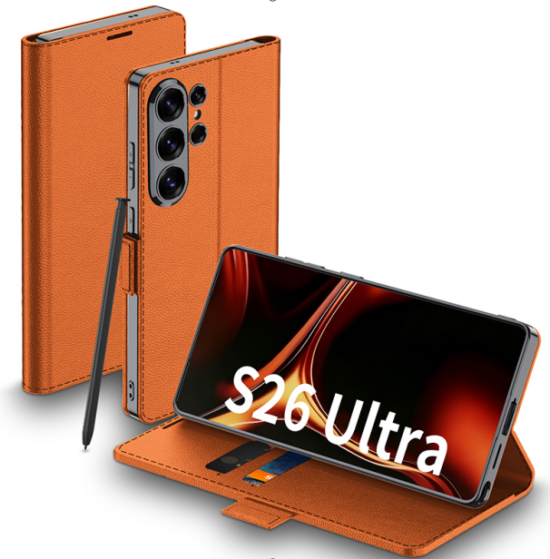 For Samsung S26 Ultra S25U New Arrival Flip Cover Plain Leather Business Anti Fall Protective Phone Case with Card Slot