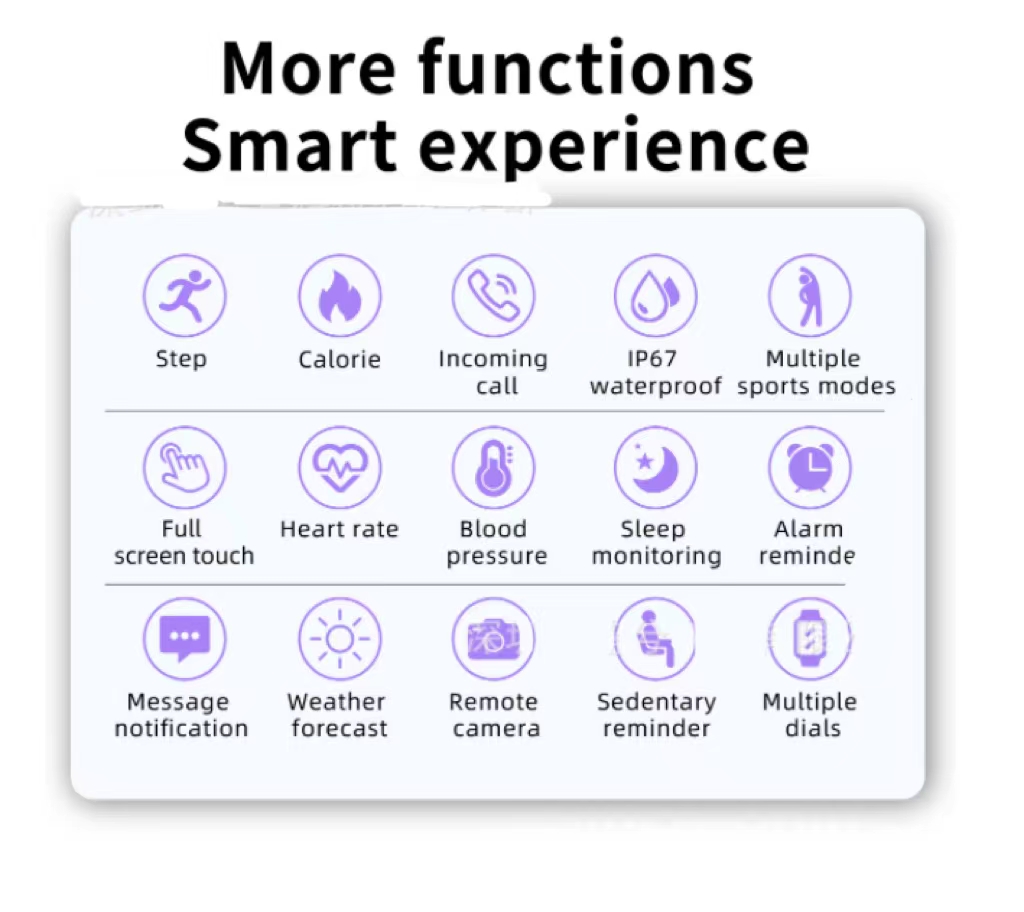 ★【Full Functioning】 IP67 professional waterproof design, splashing andwashing hands are easy to wear and worry-free. One charge;long battery lifeLow-power color screen, performance upgradebetter battery life experience,Large capacitypolymer battery.Daily battery lifePowerful standby.Scientific sleep monitoringHelp you sleep well every night.Real-time monitoring of sleep heart rate,sleep quality, analysis of sleep conditions, and generatesleep reports for you. Your sleep status can be seenat a glance, helping you to fall asleepsoundly every night.Weather forecast.Your weather steward, real-time weather conditionsprovide convenience for your work and travel.Importantinformationnot to be missed.Synchronous display of WeChat, QQ, SMS, incoming callsand other content is clear when you lift your wrist.incoming callOne-click rejection.When you fall asleep, it will automatically monitor the sleep quality and record data on the APP.