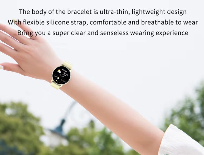★【Ultra-thin bodyCraftsmanship】The case is thin and light,lightweight design,one piecehighlight the exquisite craftsmanship,Lightweight designUltra-light and non-sense.The body of the bracelet is ultra-thin, lightweight design With flexible silicone strap, comfortable and breathable to wearBring you a super clear and senseless wearing experience.With temperature detection function, it can measure your temperature.