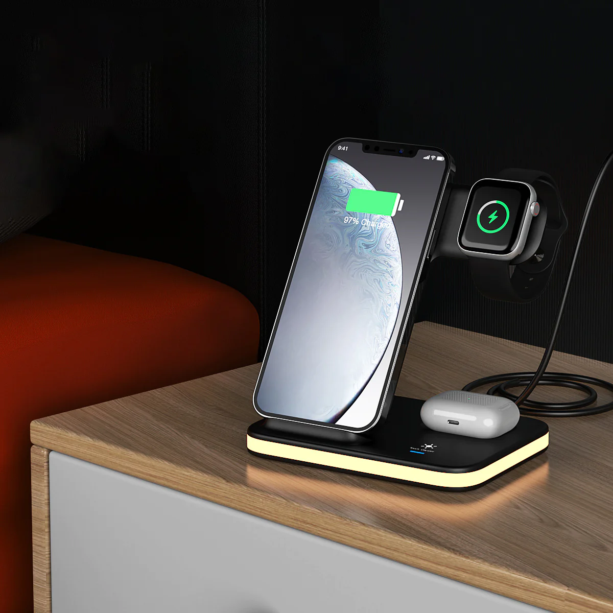 ❄【Safe for You&Your Electronics】:This fast 3 in 1 charging station for apple is equipped with multiple protection mechanisms like over-current protection , over-voltageprotection , over-temperature protection and foreign object detection function to keep your devices in tip-top shape. To provide further safety during charging,we've designed the charger base with a venting hole for this wireless charger station.