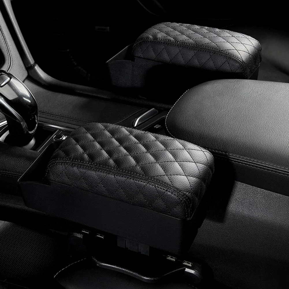 ✔✔ Beautiful and practical: It is made of high-quality ABS and artificial leather materials. Provide advanced, unique and fashionable decoration style to enhance the interior appearance of the car, effectively protect your original storage box from scratches, prevent objects from falling from the gap between seats, and make your car unique. You can not only store things, but also use them to rest after driving for a long time.