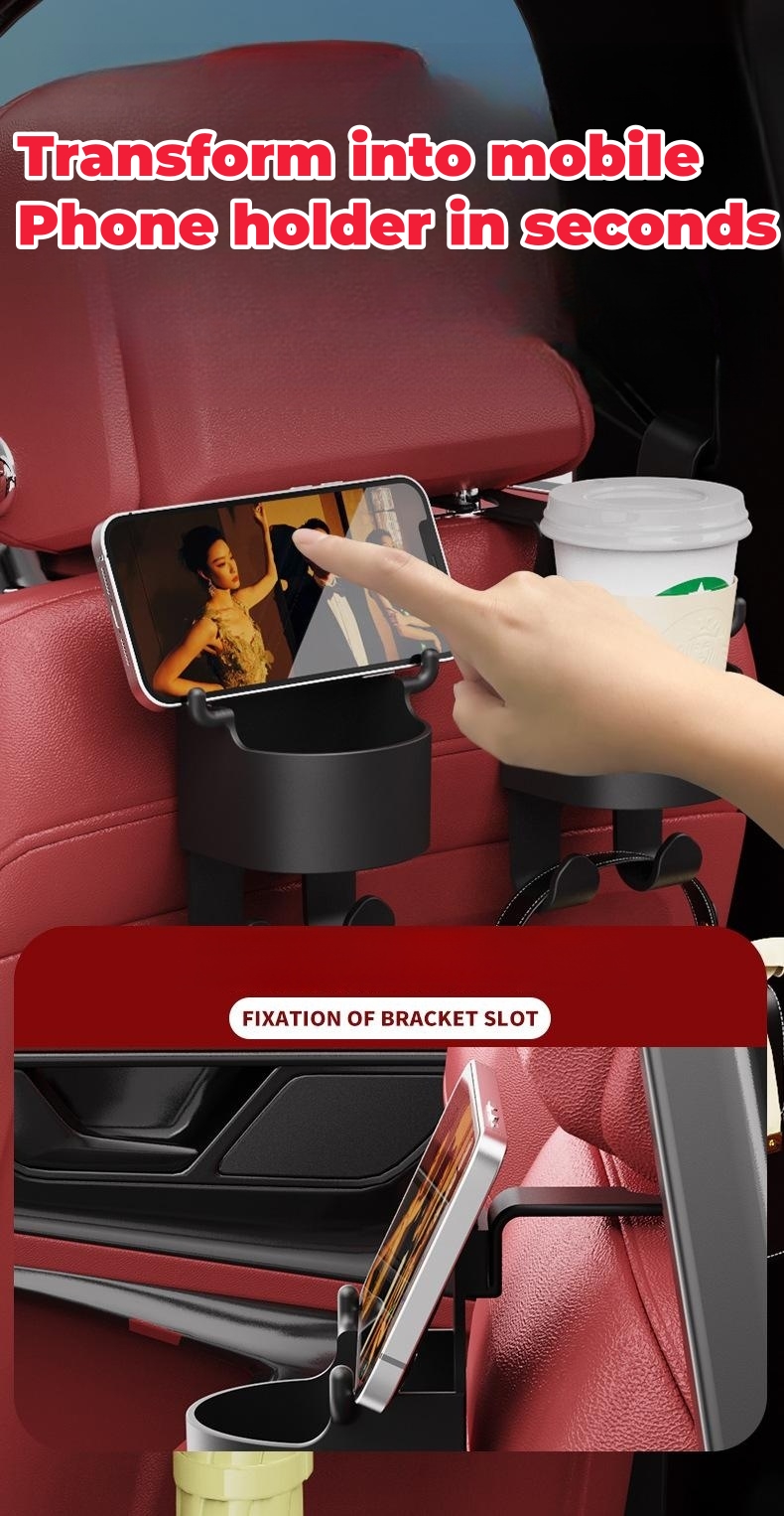 ćHigh Quality MaterialćThe car multifunctional seat water cup holder hook is made of high quality ABS material. Keep the car clean and tidy, exquisite and beautiful, waterproof and stain-proof, easy to store, say goodbye to clutter in the car, fashionable and versatile, suitable for all models.