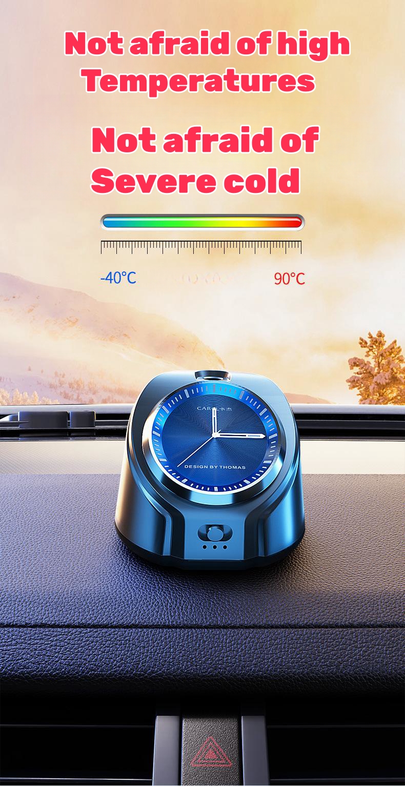 ðãMaterialãThe car aroma diffuser is made of aluminum alloy, comes with a clock and has a smooth appearance. Perfectly integrated with the car interior, the fragrance lasts long and brings a pleasant driving mood.