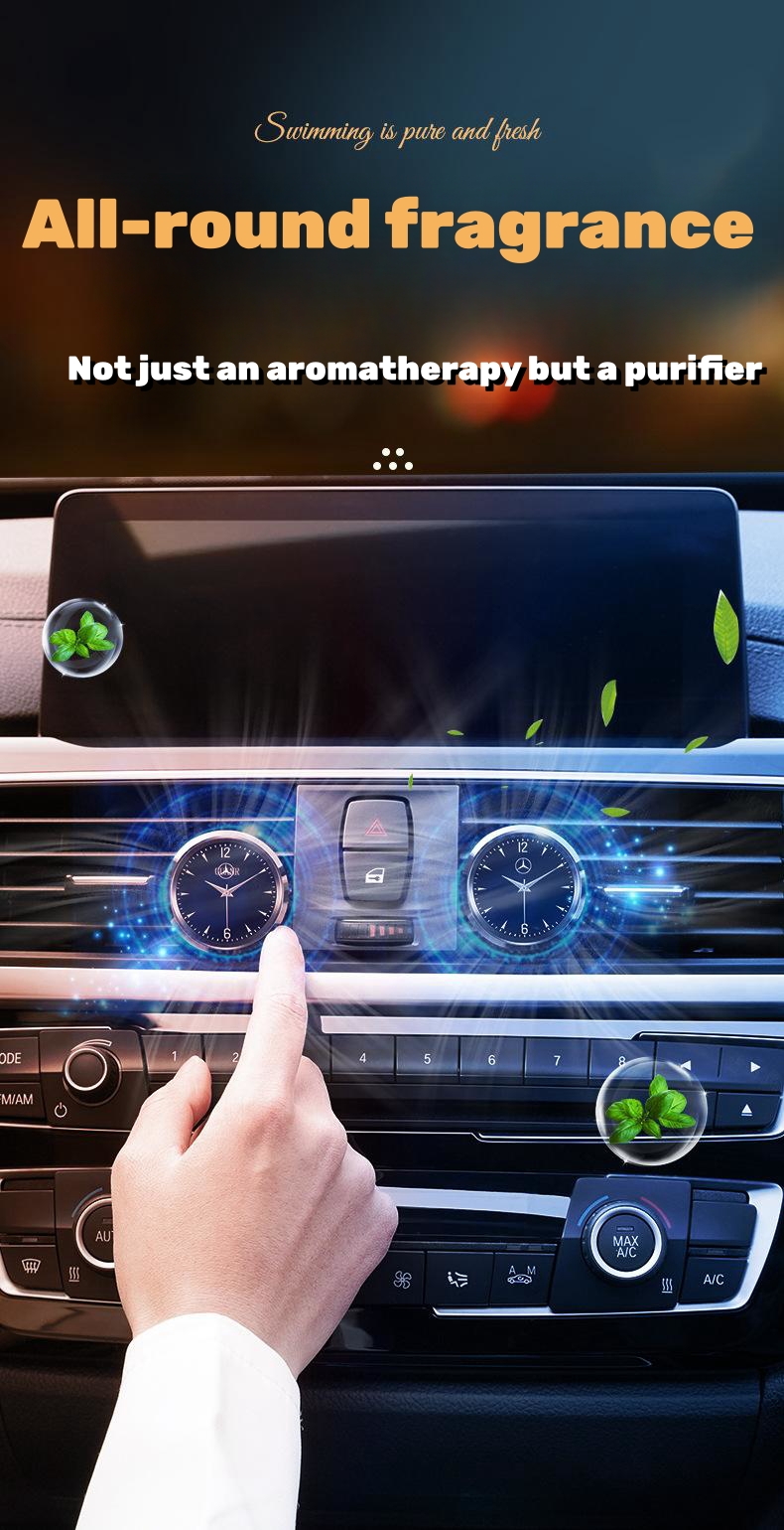 Advanced car clock: Made of high-quality alloy material, high-quality alloy luster, innovative clock fragrance, sturdy and non-fading, shockproof, durable, enhances the sense of luxury in the car, starts with the car, and the car is full of natural fragrance (Comes with one each of cologne, ocean wind chimes and blue one slice), say goodbye to interior odors, and make driving a real pleasure.