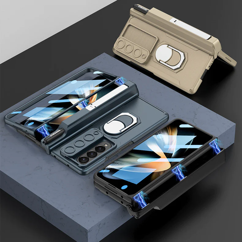 【Compatibility】 Hinged Magnetic Slide rail lens cover and Stand Combo, is only compatible with For Samsung Galaxy Z Fold 3/4 . (excluding S pen)