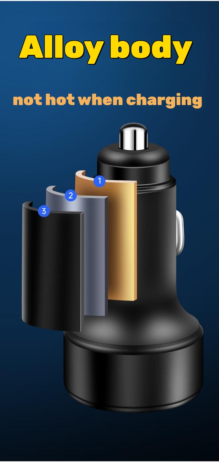 The whole body is made of alloy, which conducts heat quickly. With a smart chip, it will not get hot after charging for a long time. The snap-on shrapnel is stable and firm, and it is not afraid of bumps.